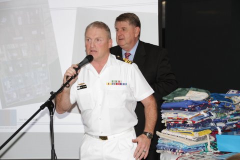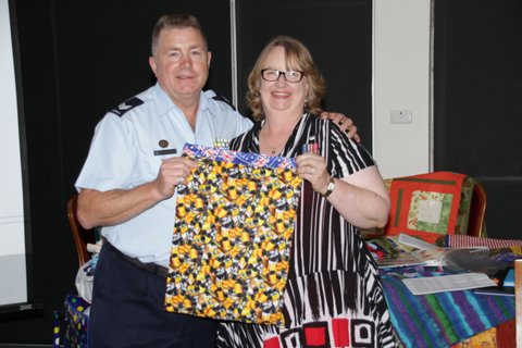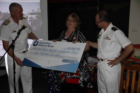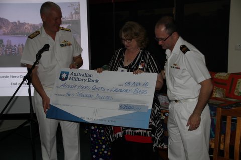 RADM Wolski, along with the WO-N surprised me with a fabulous donation for Aussie Heroes in the form of a Grant for $2000 from Keeping Watch (part of The Royal Australian Navy Relief Trust Fund RANTF)! What a generous donation! We will certainly be able to manage lots of quilts and laundry bags with that. To put it into context $2000 should buy enough batting (the padding that goes inside our quilts) for 200 quilts!!! Thank you so much.