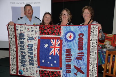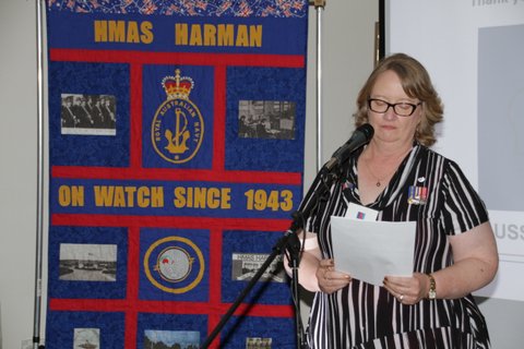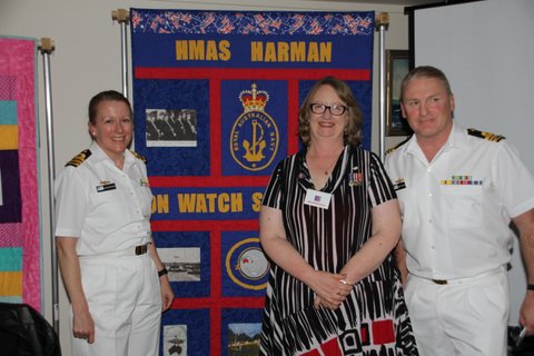 I invited the CO and XO of HMAS Harman to unveil the HMAS Harman quilt, our gift to say thank you for their massive support with the dinner.