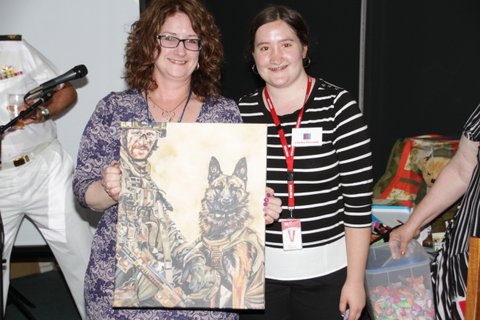 After the speeches, we drew the winners of the raffle prizes… We had a print by Amber Martin of Digger Art, generously donated by Chaplain Mark Willis and a collectible bear donated by The Military Shop. Charis drew the winning ticket….