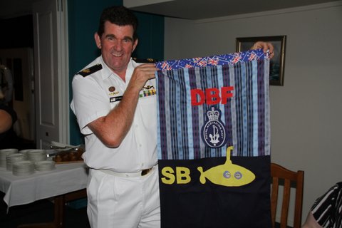 Warrant Officer Bomber Brown gave us so much assistance organising the dinner that we presented him with his own laundry bag… made by Clarissa… DBF stands for Diesel Boats forever… every submariner would know what that means….
