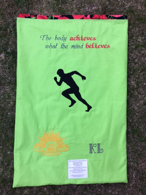 So, this year’s commitment would be making laundry bags for each individual competitor on the team, all 43 of them. What a privilege to be asked and to be given the exclusive rights to do this for such a special group of Aussie veterans.