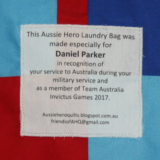 Eventually kits were sent off to each quilter. I included the profile about each athlete which was published on the Defence Website. It was important that the TEAM SIDE of the bags be identical and I am so delighted with how the bags turned out.