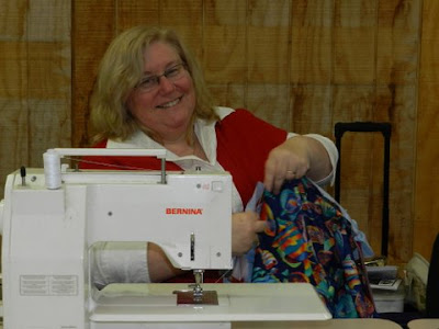 Last time we met at Penrith, Pam and I layered this quilt and she quilted it and took it home to bind it. This is going to be a WWQ. Pam has a much loved son in the RAAF and she found this one very hard to sew.