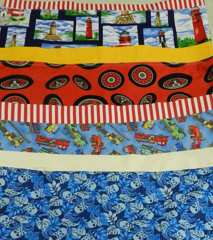 I have a lot of fun, where possible, picking out themed fabric for laundry bags. I was so delighted to find that one of the guys was a fireman! I have been waiting for that to come up! Lots of this fabric is leftover from the embarrassingly big stash I have collected over the years to sew for my boys and now they are tooooo coooool at the ripe old age of 16. Thank goodness these BIG GUYS aren’t!