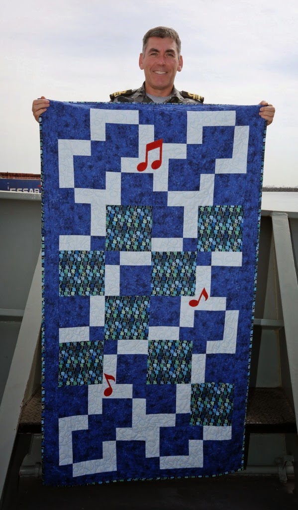 “I must have asked 100 people if they got a quilt from AHQ, Navy guys and gals were the easiest, looked at their hats and if I knew the name of the ship I asked them, almost all said yes then I asked if I could take their photo, and to give me their name and could we use it on the blog. If they hadn’t got a quilt I told them if they go again be sure and request a quilt (I think a few may have thought I was a little nuts but usually someone around them knew what I was talking about and said how wonderful they are to receive)
