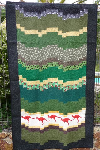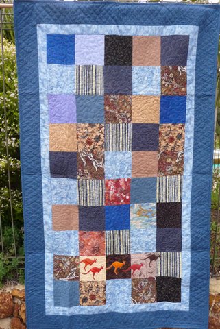 What a magnificent array of quilts! I love them all but I have to say I'm partial to the trademark kangaroo's – is it Liz or Caroline who makes those?? I love the poem it's really moving. I'm in love with the quilt, the 6th photo from the top, with the off centre square blocks in chocolate & brown…I'd like to have a go at that block if I can work it out in my head!