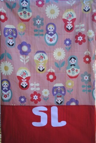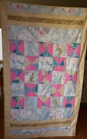 Another joint effort. The blocks were made by Kylie, they were then handed to Gail who pieced the top and then the quilt was sent to Angela who quilted and bound it and sent if off. We really do make a good team ladies!