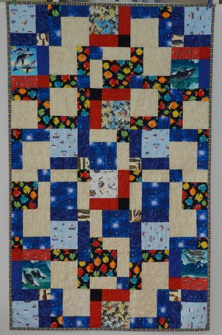 The next two are BOM quilts. That is Block of the Month quilts for the uninitiated. The blocks were put together by Louise, then the tops were passed on to Stephanie who quilted and bound them.