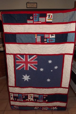 This quilt top came from Nancy, it was quilted by Stephanie and Southern Cross added by me.