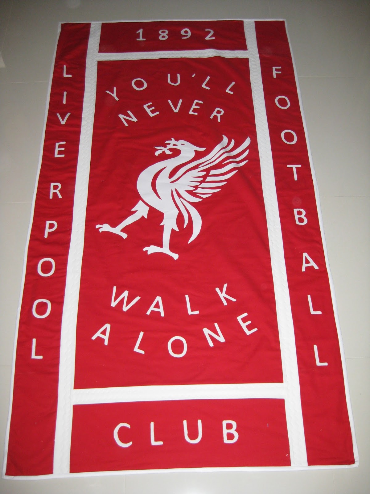 This fellow asked for “you’ll never walk alone” on his quilt if possible. Just as well Rita is in a soccer mad family as I would never have known that related to a Soccer Team!