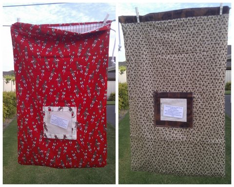 Tess from SA has been sewing laundry bags to send to her handsome husband to hand out to his mates