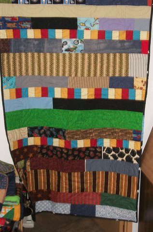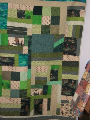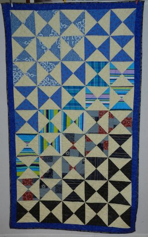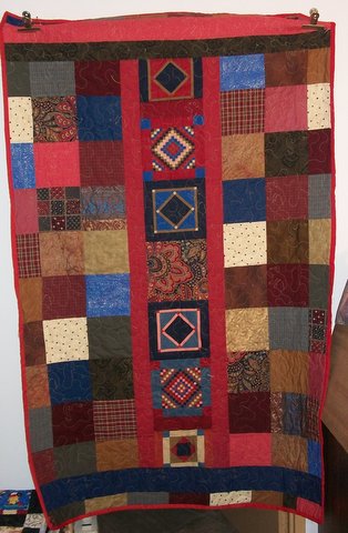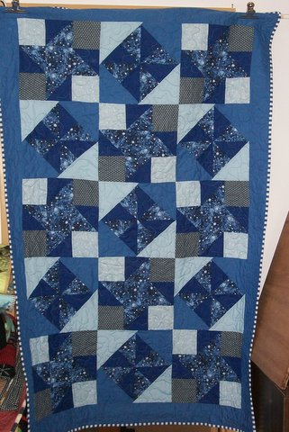 Caroline made the four patches for this one and then we pieced the top together. We took the quilt to Kim for quilting –