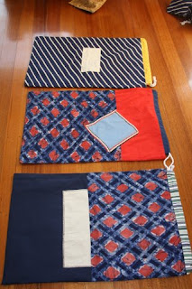 Donna has been sewing like crazy to get these four quilts and laundry bags off.