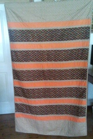 Naomi, AKA the Tech Guru, made this Jelly Roll quilt. Let me tell you she and her off-sider/sewing buddy/neighbour Sharina have been working together to crack the code and tell us how to make a Jelly Roll Race quilt that will end up 42″ by 72″. Standby. She is going to write up the tutorial and add a bunch of pictures for us visual types. When she posts it on her blog I will let you know!