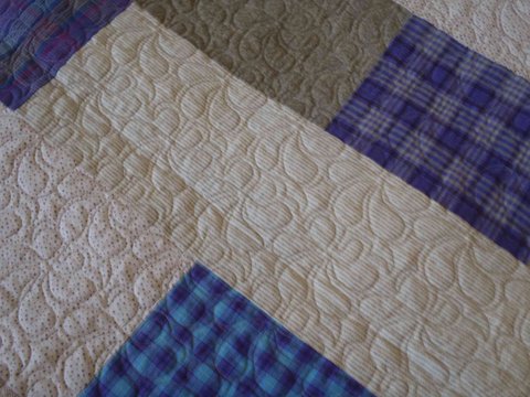 she quilted it with a lovely all over swirly quilt pattern. Nothing plain about this quilt now! And yes, I admit to a bit of quilt envy!