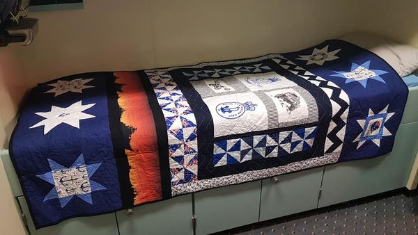 Navy theme, RAN crest (we can supply), Ship silhouettes/outlines + deployment listing (We can supply an embroidered patch)
