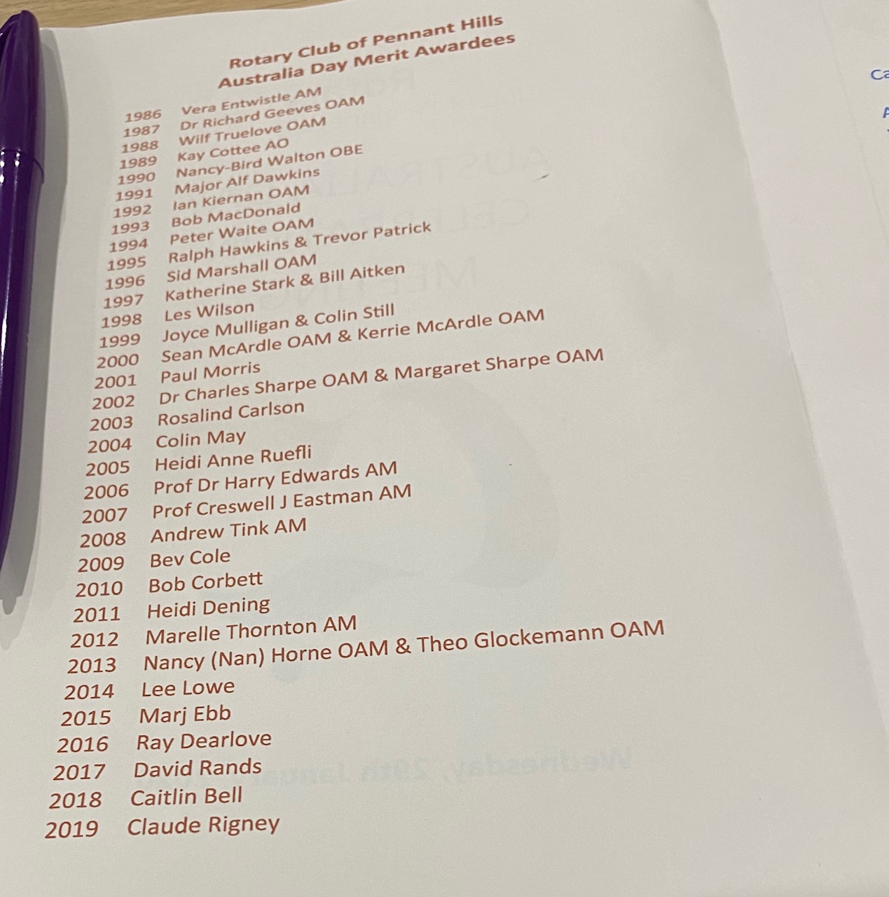 A heartfelt thank you to the Rotary Club of Pennant Hills for recognising our work in such a special way. I am humbled to be included in such a very special group.