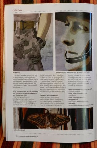 And to share the love a little. Look who else is featured in the magazine. None other than our lovely Lucy Carroll, creator of the stunning Soldier On quilt and so many other masterpieces. Lucy would have to be this country’s premier Defence Quilter.