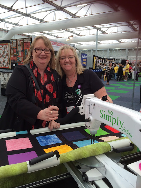 Earlier this year, Caroline, one of my longest serving Aussie Hero Friends, approached me about a way to raise the profile of Aussie Heroes whilst she was selling her new product, the new small profile quilting machine, the Handi Quilter Simply 16.  The idea was that every time she was demonstrating the machine at shows she was have an Aussie Hero quilt loaded so that anyone who came along to try the machine out could be quilting a little bit on an Aussie Hero Quilt.  The first time Caroline did this was at a show in Sydney in March this year. I went along and spent the day with her to talk about Aussie Heroes to anyone who was interested.  I had a bit of a play with the machine and then told her in no uncertain terms that I was not having another play with it as it was too easy and I was absolutely not going to buy one!