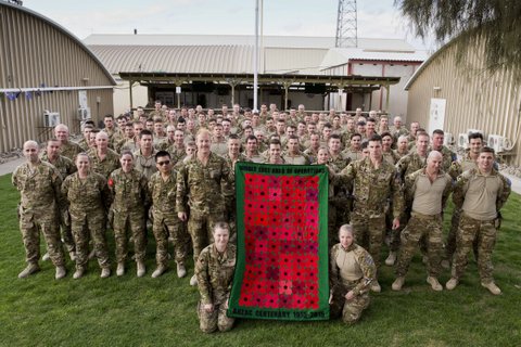 I know a number of you were very disappointed to know that the ANZAC Centenary Quilt that we made last year was not initially going to go on display in the War Memorial. We were delighted when the War Memorial decided to display it for a few months from September last year til the end of February this year and I know that many of you made the effort to go and see it.
