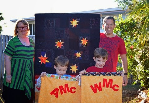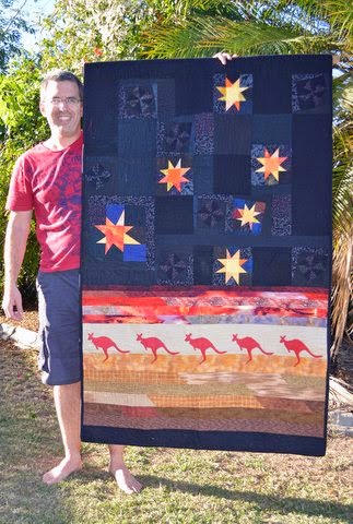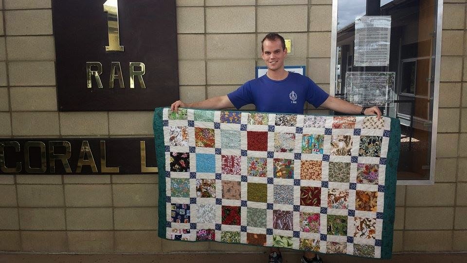 The other reason Ben contacted me was to let me know that he received a Wounded Warrior quilt whilst in hospital over there. He promised a photo of the quilt as soon as he arrived back. This quilt top was made by Miriam and I am pretty sure it was quilted by Stephanie T.