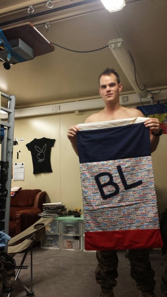 He was totally mystified when first the laundry bag arrived and then his quilt and his workmates were just a little jealous!