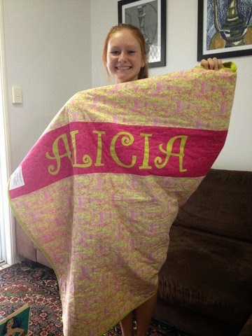 Kylie lives with her beautiful and amazing daughter Alicia. Yes, she now has a quilt of her own.