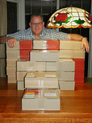 Boxes were loaded in my car last night and this morning I got a park right outside the Post Office and all are on their way as I write.