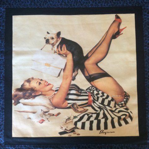 All the images that you have used are by one of my most favourite pin-up artists…I lie…he’s my favourite. But you have done the impossible…you have actually made them better! The interactiveness of the quilt has provided much entertainment over the last few hours since receiving it (I received it in the post today, before we departed Abu Dhabi…which by the way, if you ever get the chance..you must visit….).