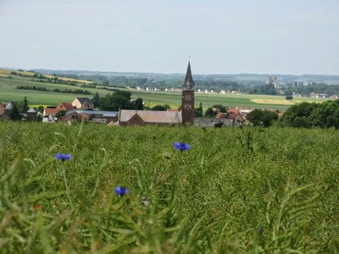 Views of Le Hamel from the memorial, including old German trenches.