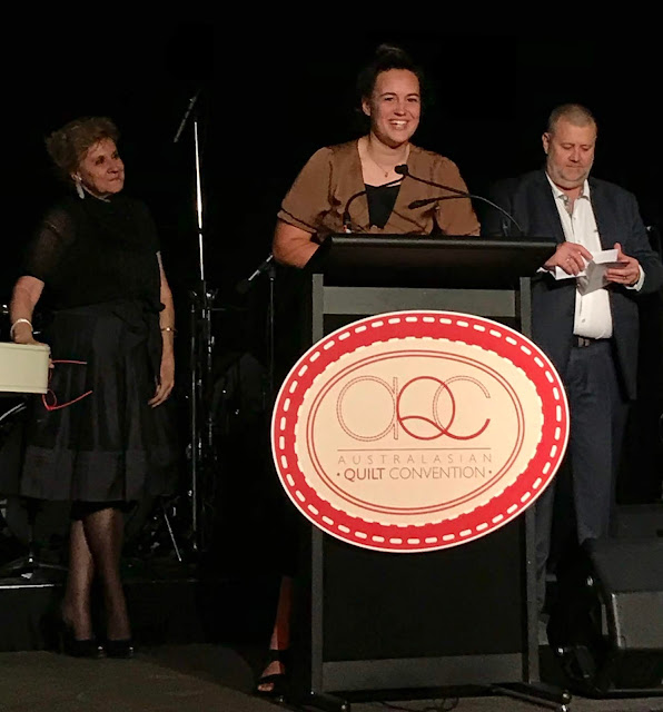 Jess is such a delightfully articulate, warm and friendly young woman, who is kind, hard-working, and clearly very talented. She made an excellent acceptance speech at the dinner, in which she acknowledged her inspirational Mum, Melissa. Melissa is one of AHQ’s prolific makers of beautiful quilts and laundry bags, all-round kind and wonderful woman, as well as an outstanding role model.