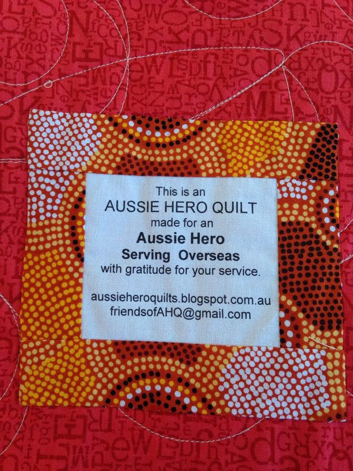 This is one of the three Aussie Hero Quilts that are held in the Medical Facility in Al Minhad Air Base for just such occasions and I can’t tell you how much I appreciated hearing this story from H. We still have our Gumleaf blocks to be put together into three more quilts for the hospital and this story should leave you in no doubt that they will be well used and above all, appreciated.