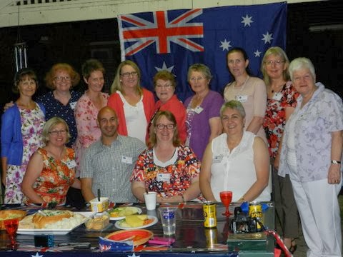 I can’t believe that I didn’t take more photos of the dinner. Julie Ann had gone to a lot of effort with Aussie flag table cloths, napkins and cups. She had even made this special AHQ Banner.