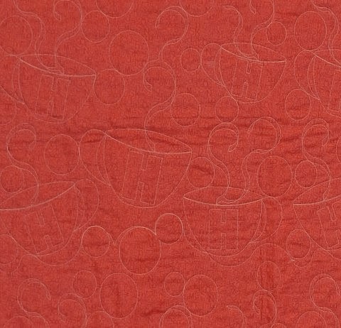 The quilting was rather special. Kym outdid herself quilting coffee cups with steam coming out of them and the letter H on the side of each one!