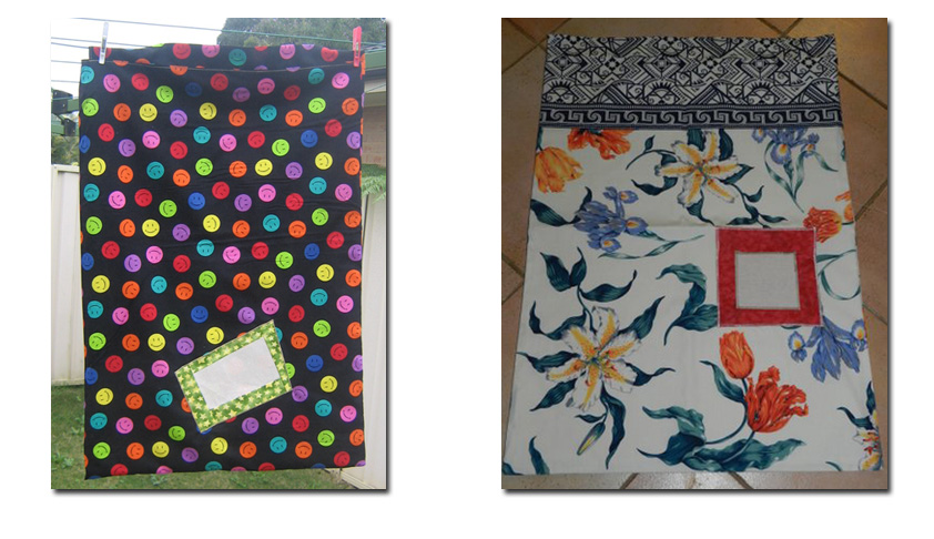 I have a bright doona cover over here, so do not need a quilt but would really love a bright, loud laundry bag if someone has the time.