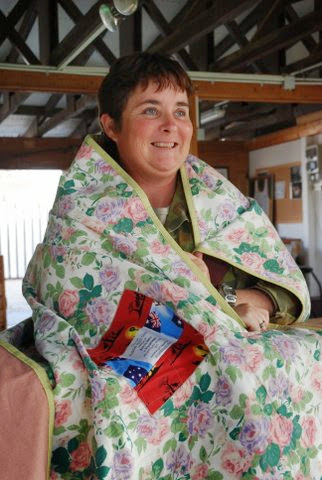 Everyone is rapt with the bags. I am very much looking forward to receiving a quilt, it will be loved and have quite a few more military adventures before I retire. I plan for it to go where ever I go from now on.
