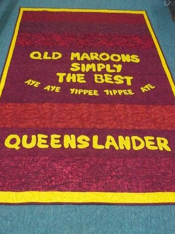 They frequently feature the flag or a southern cross.  The first of these was given to a soldier in early June 2012.   I wish it wasn’t needed but I can’t tell you how proud I was that he received an Aussie quilt.
