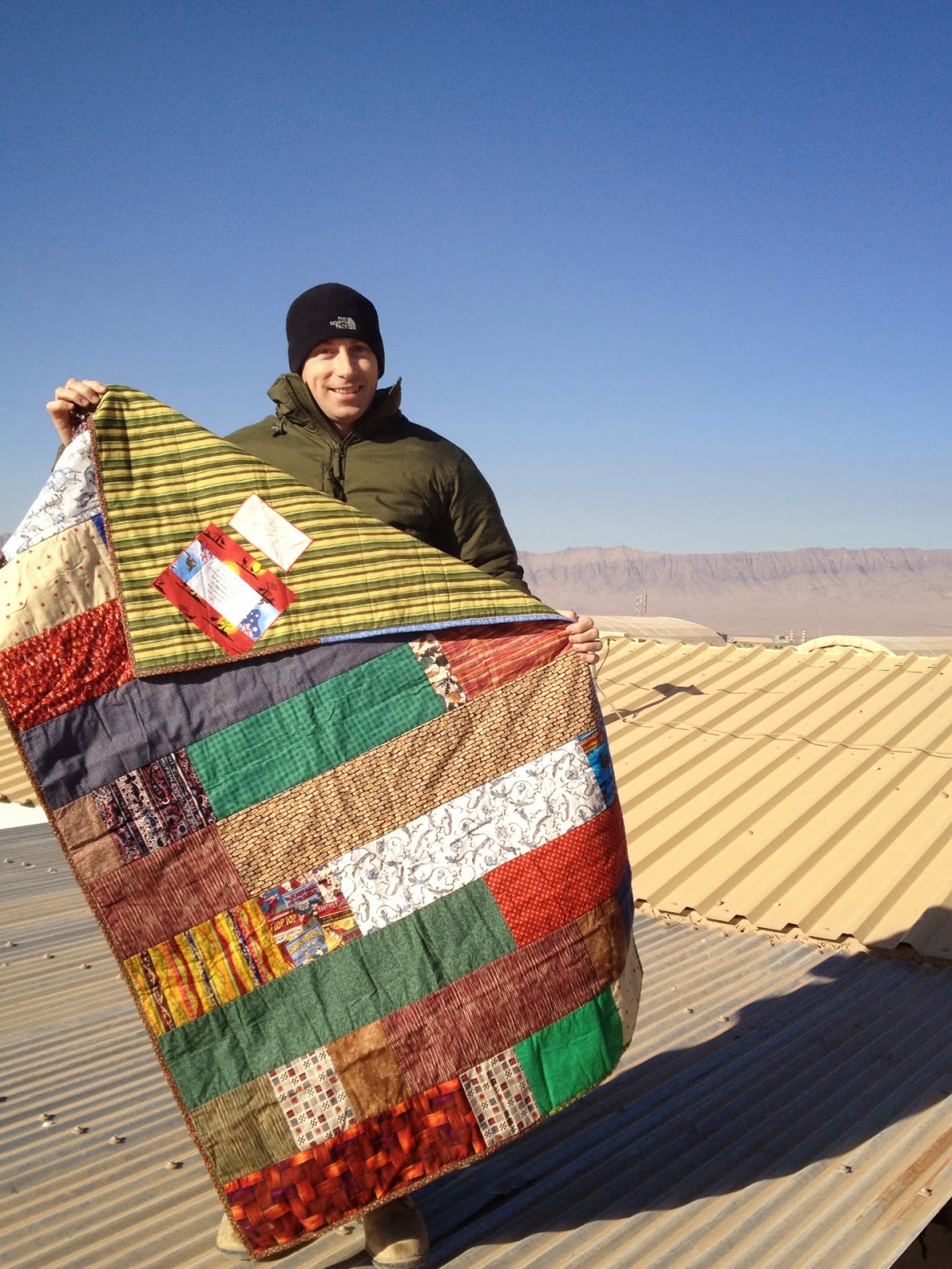 “It is nice to have a constant visual reminder that the folks back home care enough to go to all this effort for us. These quilts and laundry bags are special to us not just for what they are, but also for what they represent.”