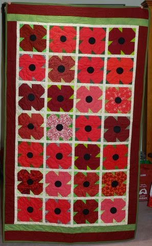 We also make Fallen Warrior Quilts – the first quilt was handed to the family of an Aussie Hero killed in action in July 2012.  The families of the men who have died since then have also been offered quilts.  Lately we have been making Poppy quilts.  These quilts are made from blocks sent in from all over Australia which enables as many people as possible to contribute.  Occasionally we tailor the quilt to suit the preferences of the Fallen Warrior’s loved ones. Isn’t that the least we can do?