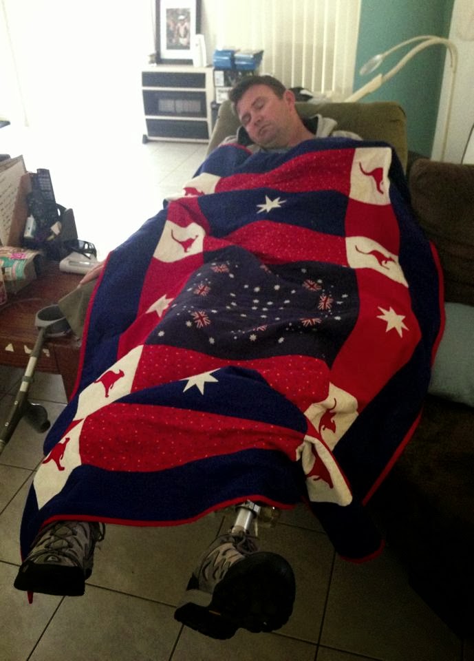 If you read the blog you will know that this is Garry whose story I recently told on the blog here.  I did not know who Garry was when I heard about him.   It was a several months after Aussie Heroes had started that Garry’s wife, Katrina, contacted me and a few months after that when I met both of them.  I am so proud to say that they are both friends of mine now.  Back then though it just hurt to know that an Aussie soldier, in fact more than one, had been injured seriously and had received a quilt from America because Australia could not provide him with one.