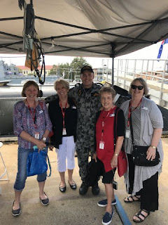 Huge motors and great pieces of steel make this mighty grey/black machine move clandestinely through our waters. There are 60 crew on board, 2 of these are female (another 2 will join soon).The ‘bunks’ we learned are called racks, and just fit a person….heaven help you if you are tall! The submariners work in 6 hour shifts and there are 4 meals a day provided by 2 chefs from a small galley kitchen.