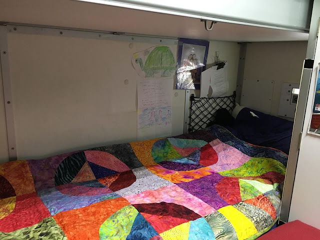 We had not even made it home before we got a message showing me that the XO’s quilt was already on her bunk. This one made by Jean B and quilted by Philomena. The laundry bag was made by your truly.