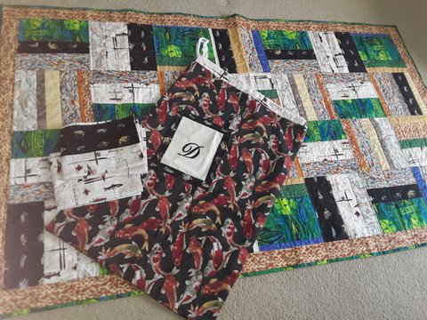 BOM’s embroideries (by Rhonda we think) and top assembled by Jo H and quilted by Lynn V