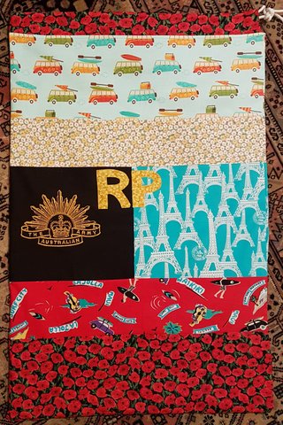 It was very evident that the creative gifts from a perfect stranger to a deployed recipient is a precious and wonderful thing to be treasured. There were many people swapping stories and a great deal of hugging going on all evening. For those of you who sew and couldn’t make it to Canberra last weekend, I can only describe the response from the recipients as overwhelming