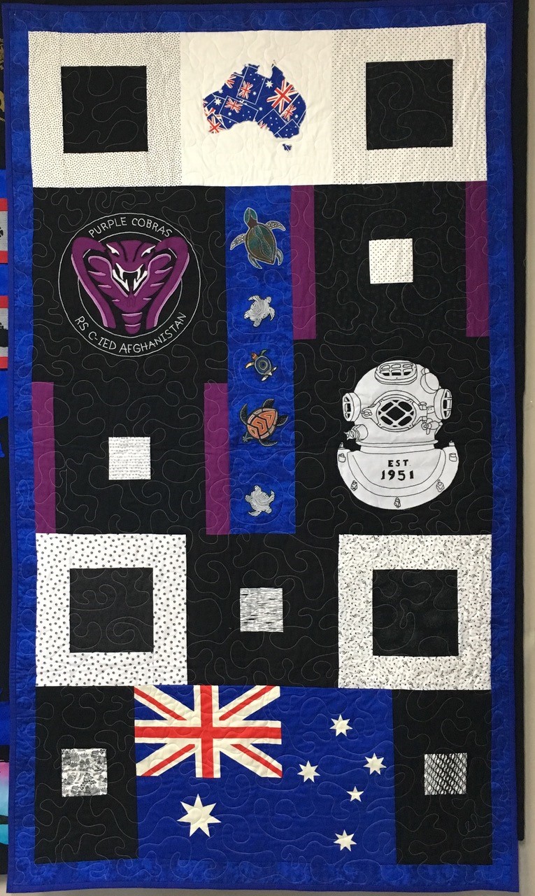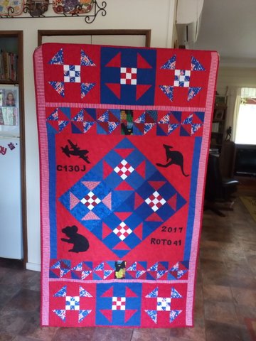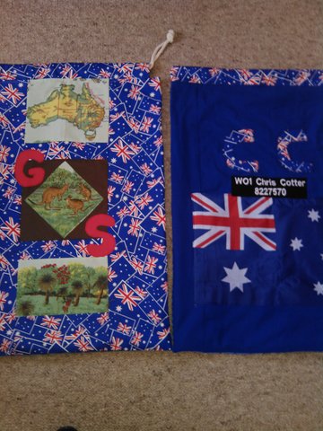 It was very evident that the creative gifts from a perfect stranger to a deployed recipient is a precious and wonderful thing to be treasured. There were many people swapping stories and a great deal of hugging going on all evening. For those of you who sew and couldn’t make it to Canberra last weekend, I can only describe the response from the recipients as overwhelming