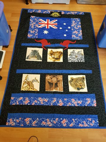 BOM’s pieced into top by Ange H and Nola B, Quilting by Mary M binding by Sandy C
