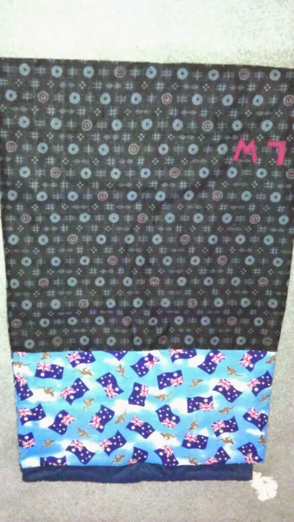 Before I went to AQC I cut out three laundry bags for three blokes but, of course, ran out of time. Thankfully Sue G was kind enough to sew them up for me. Thanks Sue! 🙂