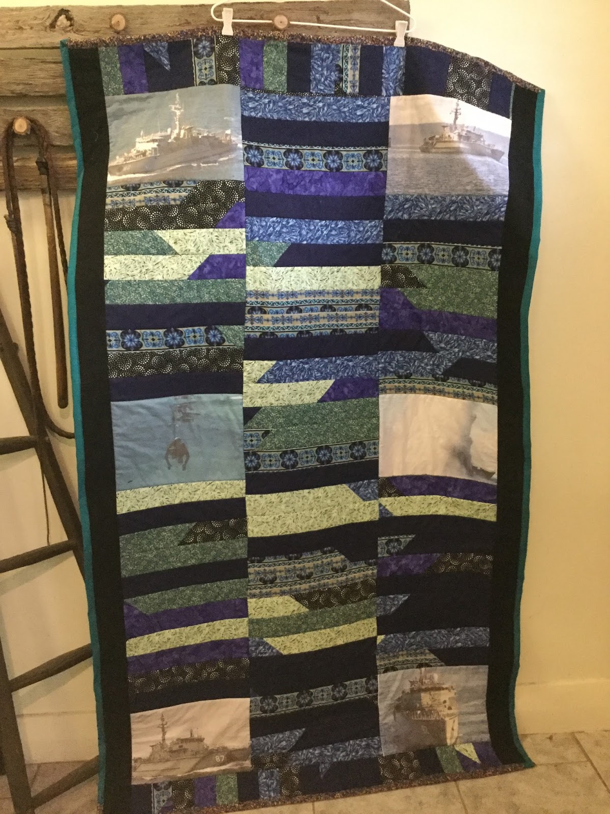 Some of you will know our very special CPO quilter who made her presence felt at our dinner last year, bidding against a Brigaidier and a Major General for some of our prizes!! We she has headed back over on deployment.