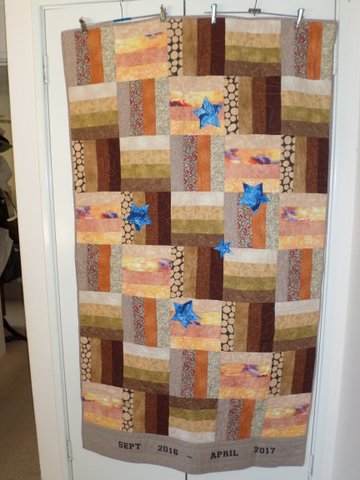 Arthur created the quilt top, I added the stars and Bridget quilted it.
