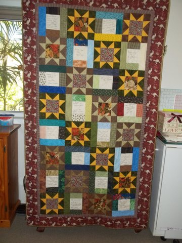 This is the first of the quilts made up from the signature blocks we collected at AQC this year. This one was completed by Jacqui D and is going to hang in the ANZAC Hospital in Iraq for our coalition troops.